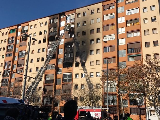 Fins al lloc del sinistre s’han desplaçat efectius de bombers, amb vehicles d’autoescales per accedir a les 8 plantes afectades, serveis d’emergències mèdiques, Guàrdia Urbana de Badalona i Mossos d’Esquadra. Segons bombers, el foc hauria començat a la planta baixa, per causes que es desconeixen, i s'hauria propagat verticalment a través de l'escala als pisos superiors, afectant 8 plantes i les dues façanes de l’immoble.