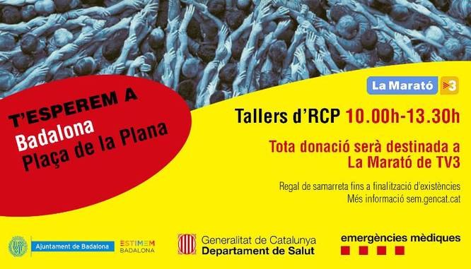 L’Ajuntament de Badalona i el Sistema d’Emergències Mèdiques (SEM) oferiran dissabte, 14 de desembre, de 10 a 13.30 hores a la plaça de la Plana, tallers de tècniques de reanimació cardiopulmonar (RCP). Aquesta activitat forma part dels esdeveniments solidaris amb la “Marató de TV3” que enguany tindrà lloc diumenge 15 i que estarà dedicada a les malalties minoritàries.