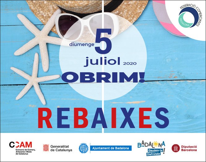 Els establiments comercials de Badalona obriran aquest diumenge 5 de juliol, un dels vuit dies festius que la Generalitat de Catalunya permet als comerços obrir al públic aquest any d'acord amb l'Ordre EMC/129/2019, de 28 de juny, per la qual s'estableix el calendari d'obertura a Catalunya dels establiments comercials en diumenge i dies festius per als anys 2020 i 2021