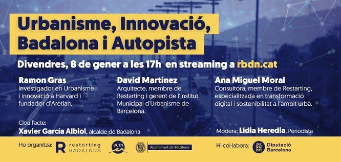 L’acte “Urbanisme, Innovació, Badalona i Autopista” està organitzat per l’associació Restarting Badalona, l’Ajuntament de Badalona i Reactivació Econòmica Badalona amb la col·laboració de la Diputació de Barcelona