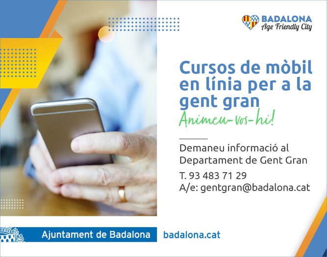 El Departament de Gent Gran de l’Ajuntament de Badalona ofereix una formació molt pràctica sobre l’ús del telèfon mòbil. Els cursos es fan en línia, per a grups de vuit persones i en vuit sessions setmanals d’una hora i mitja cadascuna.
