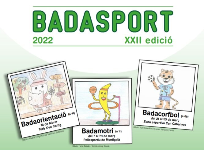 Després de no poder-se celebrar durant el curs 2020-21 a causa de la pandèmia aquest mes de febrer s’inicia una nova edició del Badasport, la XXII, que es desenvoluparà fins al mes de juny. El Badasport és una iniciativa del Grup de Mestres d’Educació Física de Badalona que promou la pràctica esportiva a quaranta escoles a través de sis modalitats mitjançant jocs preesportius, cooperatius i tradicionals, d’esports com el corfbol i l’atletisme, així com de proves d’orientació en un parc de la ciutat, i de diverses activitats lúdiques a un poliesportiu i a la platja.