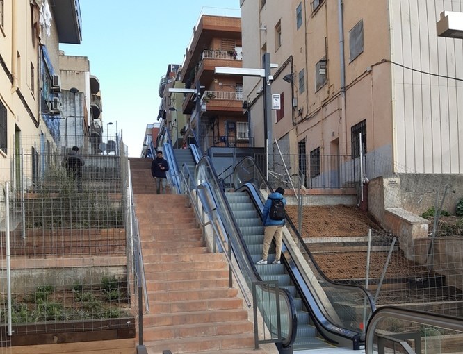 Conjuntament amb les escales s’ha urbanitzat l’àmbit amb la plantació de jardineres, pavimentació d’espais d’estada, renovació de les infraestructures existents, de la xarxa de clavegueram i de l’enllumenat. L’actuació s’ha adaptat a les rasants existents per tal de respectar totes les entrades als habitatges.