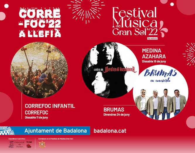 Els grups musicals Medina Azahara i Brumas seran els protagonistes de la cinquena edició del Festival de Música Gran Sol de Badalona, que enguany torna a celebrar-se després d’un parèntesi de dos anys marcats per la pandèmia. Els concerts es faran novament a l'amfiteatre del parc del Gran Sol de Llefià i seran gratuïts.