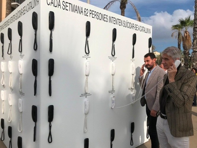 El Departament de Salut situa al passeig marítim de Badalona una instal·lació que convida a descobrir històries relacionades amb el suïcidi per donar a conèixer el servei especialitzat en l’atenció telefònica a persones amb conducta suïcida