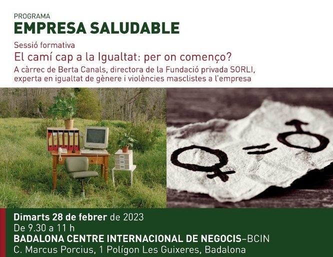 La sessió formativa tindrà lloc des de les 9.30 fins a les 11 hores al BCIN (carrer de Marcus Porcius, 1 del polígon Les Guixeres de Badalona) i estarà impartida per Berta Canals, directora de la Fundació privada SORLI, experta en igualtat de gènere i violències masclistes a l’empresa, qui informarà sobre els primers passos a donar per assolir la Igualtat en l'empresa.
