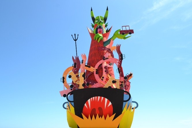 El Dimoni ‘Sense fum!’, figura inspirada en la contaminació dels fums dels vehicles, dissenyada per Àgata Gil i construïda per Ramon de los Heros., cremarà demà a la nit, 10 de maig, vigília de Sant Anastasi a la platja dels Pescadors com a acte central de la Nit de Sant Anastasi. Un cop apagades les flames, la música prendrà el relleu festiu amb el Ball del Micaco, a la plaça de la Plana, i els Concerts de Festes, al passeig Marítim, amb Edu Esteve, Juan Magan i Doctor Prats com a artistes convidats.