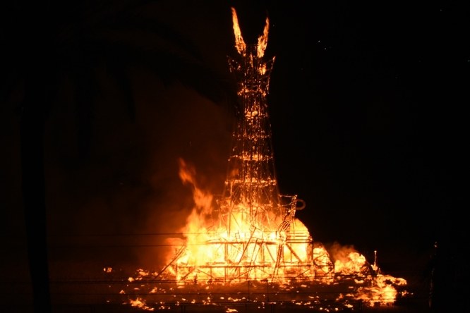 • La celebració de la Cremada del Dimoni i el Piromusical va concentrar 100.000 persones a la Rambla, al passeig Marítim i a la platja de la ciutat.