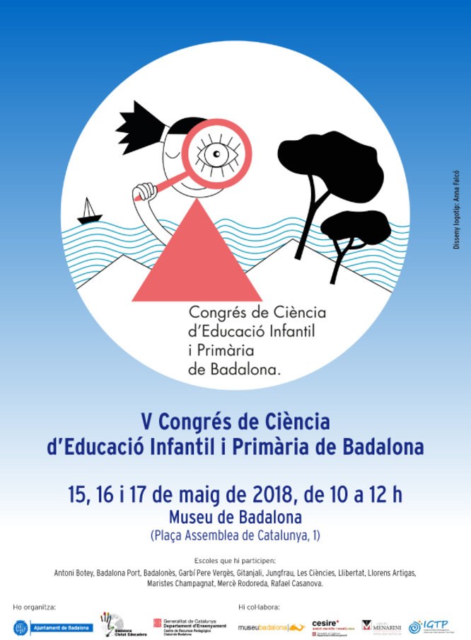 Des de d’aquest dimarts, 15 de maig, fins dijous, dia 17, se celebra a Badalona el V Congrés de Ciència d’Educació Infantil i Primària. Alumnes de dotze escoles de la ciutat, dues més que el curs passat, presentaran els seus treballs i experiències d’observació, recerca i experimentació.