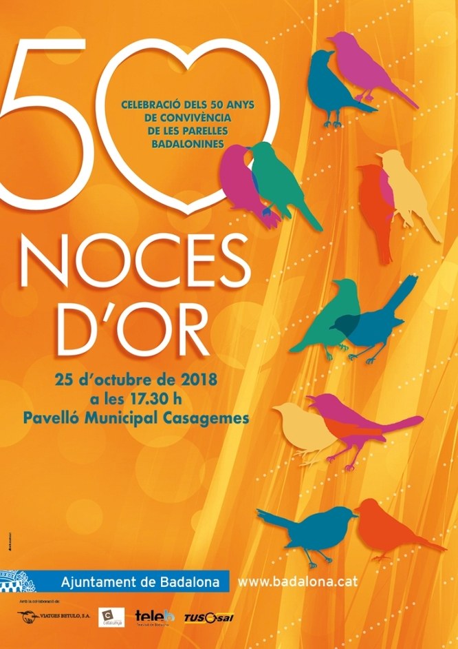 Badalona tornarà a reconèixer amb un acte festiu els 50 anys de convivència de les parelles que celebren les seves Noces d’Or durant l’any 2018. La trobada tindrà lloc dijous 25 d’octubre al Poliesportiu Casagemes. Les parelles que enguany facin els 50 anys de convivència tenen de termini fins al proper 28 de setembre per a fer la inscripció.