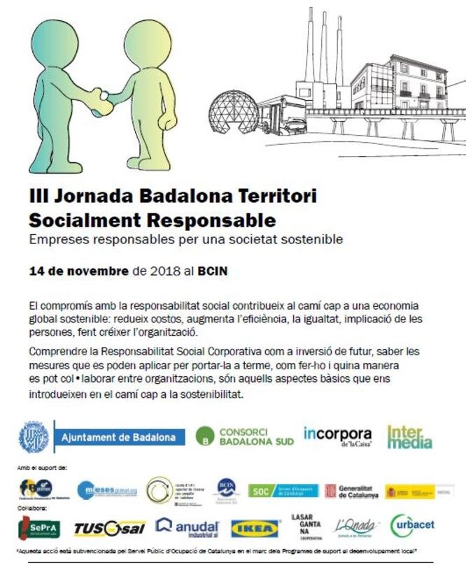 El Centre de Negocis i Convencions de Badalona (BCIN) acollirà el proper dimecres 14 de novembre, a partir de les 9 hores, la III Jornada Badalona Territori Socialment Responsable: Empreses Responsables per una Societat Sostenible.
