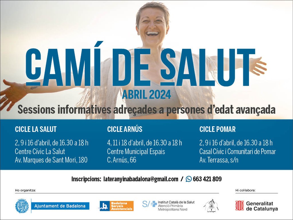 Badalona acollirà durant el mes d’abril el cicle de sessions informatives “Camí de Salut”, un conjunt d’activitats adreçades a persones d’edat avançada que organitza l’Ajuntament de Badalona juntament amb l’Institut Català de la Salut (ICS), Badalona Serveis Assistencials (BSA) i el Grup la Teranyina (format per diferents serveis i entitats que treballen amb i per a la gent gran).