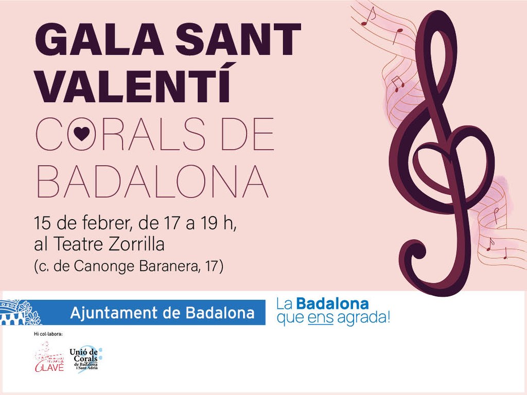 Les corals de gent gran de Badalona Bétulo, Pep Ventura, Can Mercader-Morera i Badalonense faran un concert aquest dijous, 15 de febrer, de 17 a 19 hores, al Teatre Zorrilla (carrer del Canonge Baranera, 17) per commemorar la festivitat de Sant Valentí. Amb aquesta iniciativa es vol fer també un reconeixement a l’experiència i a la contribució que les persones grans fan a la societat amb actes de ciutat com aquests.