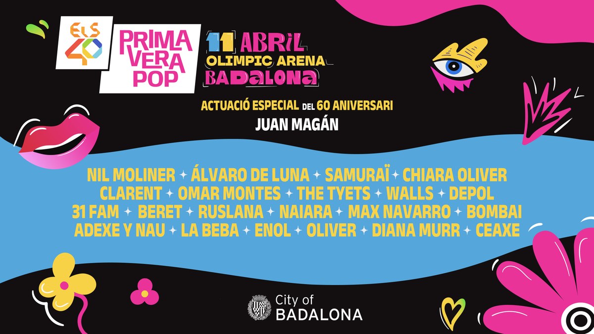 Badalona tornarà a ser escenari d’ELS40 Primavera Pop 2026, el festival de música més rellevant de l’escena pop a Espanya. Amb un desplegament tècnic i escenogràfic espectacular, la cita reunirà el pròxim 11 d’abril al Palau Municipal d’Esports alguns dels artistes més rellevants del moment, combinant en un mateix cartell veterania i joventut. Alguns dels noms més destacats que pujaran a l’escenari d’ELS40 Primavera Pop són: Juan Magán, Nil Moliner, Álvaro De Luna, Samuraï, Chiara Oliver, Clarent, Omar Montes, The Tyets, Ruslana, Naiara o Max Navarro, entre d’altres.