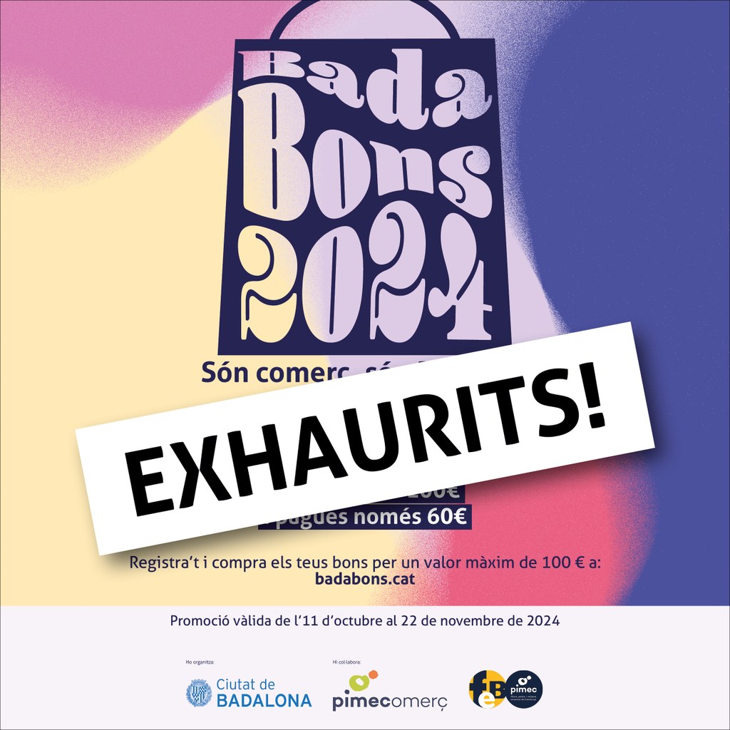 Ahir al matí es van exhaurir els 400.000 euros que l’Ajuntament de Badalona havia destinat a la campanya municipal de vals de descompte en els comerços de proximitat i restaurants de la ciutat “Badabons”. D’aquesta manera, els usuaris ja no poden adquirir més bons de descompte. No obstant això, totes aquelles persones que encara en tinguin els podran fer servir en tots els establiments adherits fins al 22 de novembre. Fins aquella data, els negocis que ho desitgin poden continuar sumant-se a la campanya per ser un dels establiments on els usuaris puguin bescanviar els seus vals de descompte.