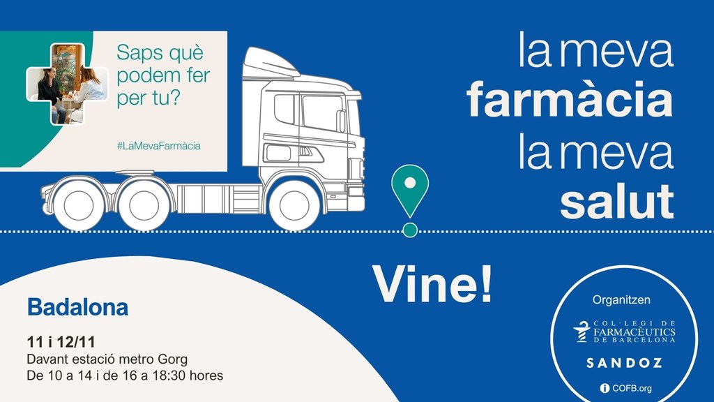El pròxim dimarts, 11 de novembre, a les 11:00 hores, es presentarà a Badalona la campanya divulgativa i sanitària “La meva farmàcia, la meva salut”, impulsada pel Col·legi de Farmacèutics de Barcelona (COFB) i la farmacèutica Sandoz, amb la col·laboració de CaixaBank i el suport de l’Ajuntament de Badalona.