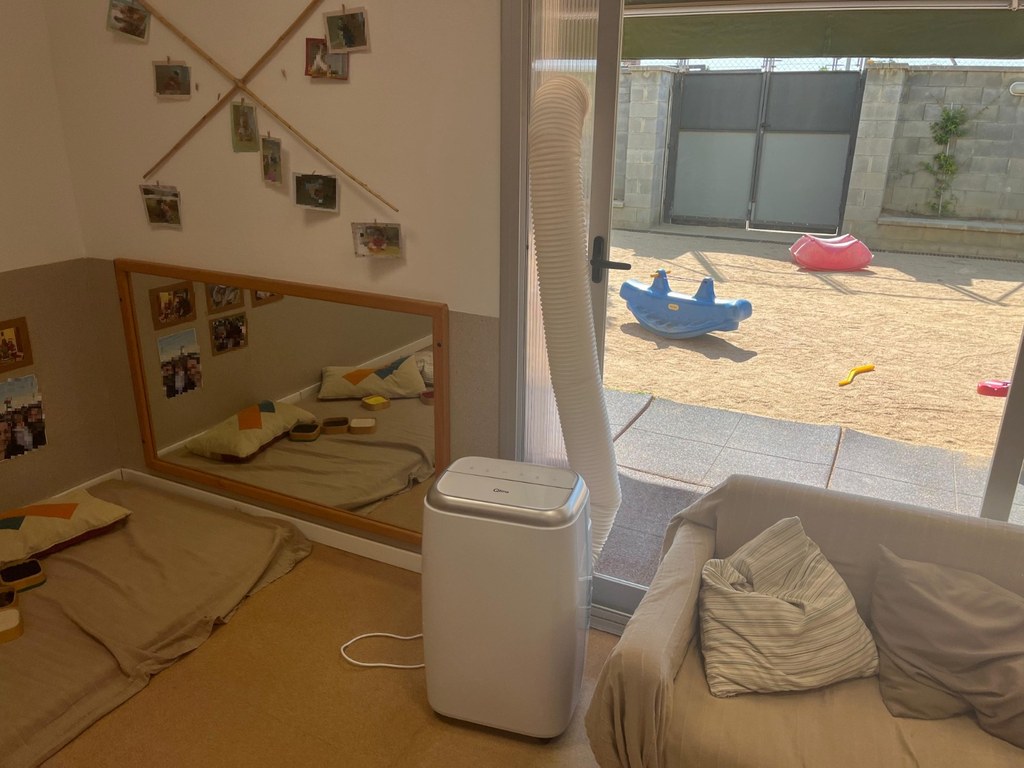 La instal·lació d’aquest sistema portàtil és fruit dels acords entre l’Ajuntament i les associacions de pares i mares de les escoles bressol municipals com a mesura provisional fins que es portin a terme els treballs definitius de climatització d’aquests equipaments.