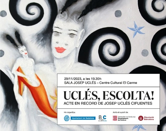La regidoria de Cultura de l’Ajuntament de Badalona ha organitzat per aquest proper dimecres, 29 de novembre, a les 19.30 hores, un homenatge a la figura de Josep Uclés Cifuentes amb el títol “Uclés, escolta!”. L’acte es farà a la sala d’exposicions del Centre Cultural El Carme, ubicada al carrer de Francesc Layret, 78-82, planta -1, que duu el nom de l’artista, i comptarà amb la presència de la família del pintor. La presentació de l’homenatge anirà a càrrec de la regidora de l’Àrea de Cultura, Vanesa González.