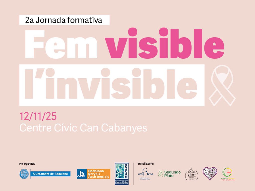 El Centre Cívic Can Cabanyes acollirà el pròxim dimecres 12 de novembre la 2a Jornada formativa “Fem visible l’invisible” impulsada per l’Ajuntament de Badalona, Badalona Serveis Assistencials (BSA) i l’entitat Associació Prevenció I Informació Càncer (PICAM), que ofereix serveis i activitats als pacients oncològics i els seus familiars. A la jornada es tractarà sobre la importància de l'estètica oncològica en la millora de l’estat de salut mental de les pacients afectades per càncer de mama, així com la importància de la psicologia, la fisioteràpia i l’alimentació en el procés d’atenció i cura de la pacient oncològica.