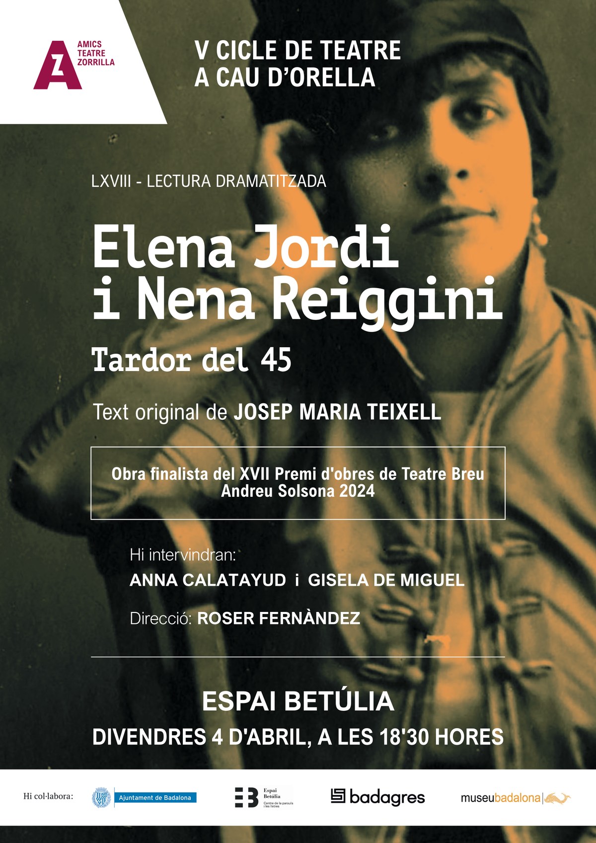 - Lectura dramatitzada “Elena Jordi i Nena Reiggini, tardor del 45”