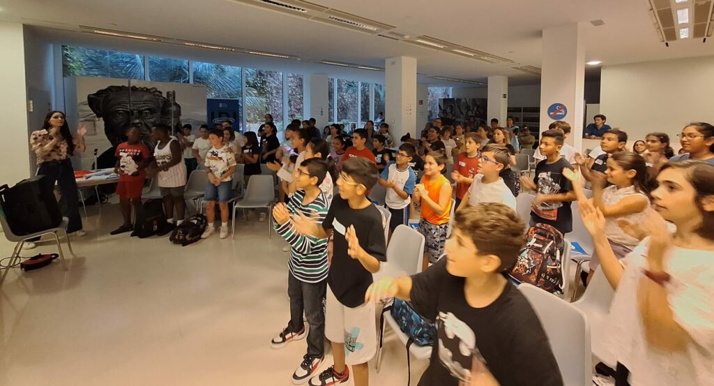 Abans de marxar la Sandra ens proposa que mirem, cantem i ballem amb el vídeo de la coreografia de la cançó dels Drets dels Infants, que podrem ensenyar a tots els nostres companys per ballar-la a cada centre el 20 de novembre (diapo 69):
