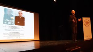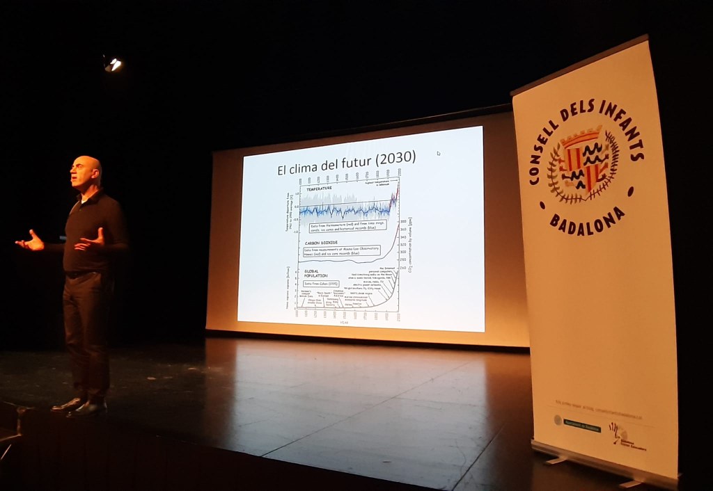 Sota el títol “El temps al 2030”, el meteoròleg badaloní Tomàs Molina ha fet, aquest dimarts 25 de febrer, les dues primeres sessions de les xerrades adreçades a gairebé un miler de nois i noies de 5è i 6è de primària d’escoles vinculades al Consell dels Infants de Badalona. Precisament el futur del temps al planeta Terra és un dels temes de treball escollits aquest curs pel Consell dels Infants de Badalona.