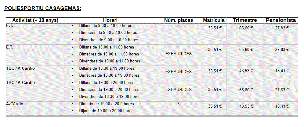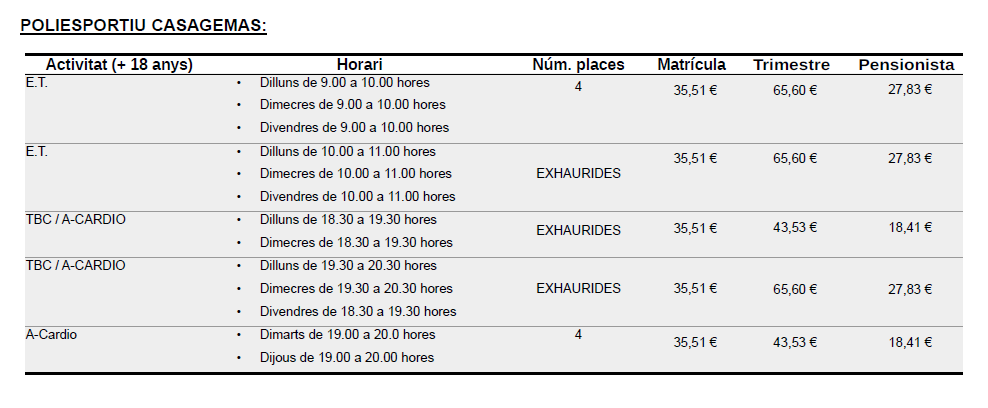 UBICACIÓ: Gimnàs Poliesportiu Casagemas - Albert Esteve