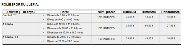 En aquesta instal·lació, posem al vostre abast el següent programa de classes dirigides, totes elles especialment dissenyades per a majors de 18 anys: