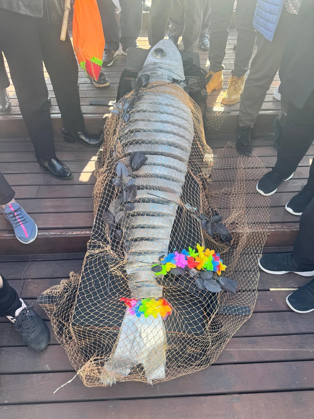 La sardina, magra i prima després dels excessos carnals del Rei Carnestoltes, anava disfressada amb faldilles per a la ocasió i penjada amb un fil d'una canya.