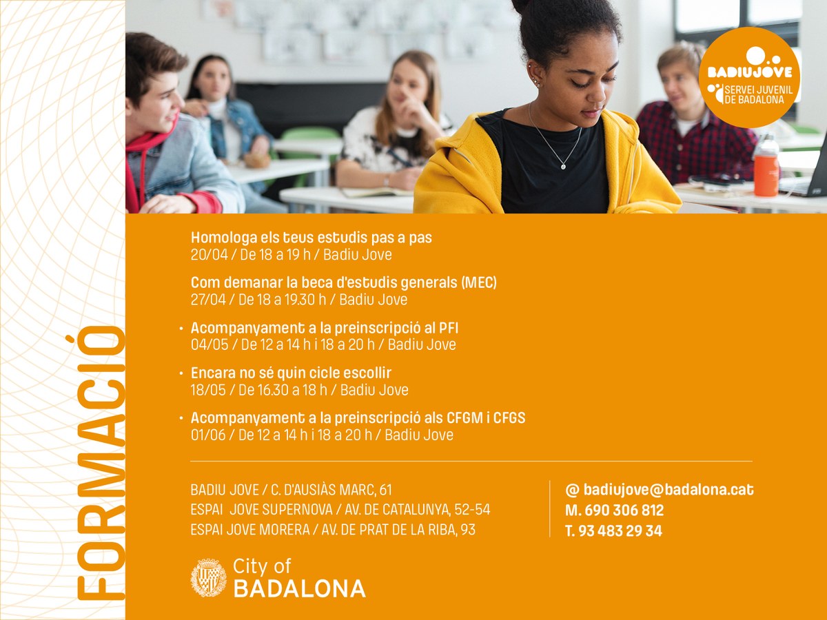 El programa d’activitats formatives és un servei de contingut formatiu i educatiu a l’abast de tots els joves i les joves, de 12 a 35 anys, així com professionals i entitats, entre d’altres agents, que treballin amb el col·lectiu jove i les seves famílies. Es tradueix en una variada programació mensual de cursos, tallers, cicles monogràfics i xerrades.