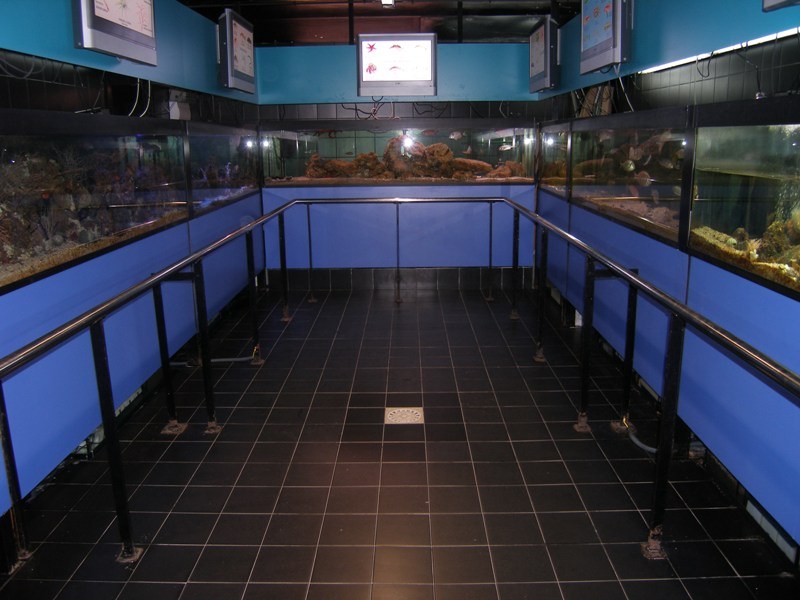 Està situat al soterrani i s’hi poden observar en viu diferents ambients submarins característics del litoral mediterrani amb els peixos i invertebrats que els són propis.
