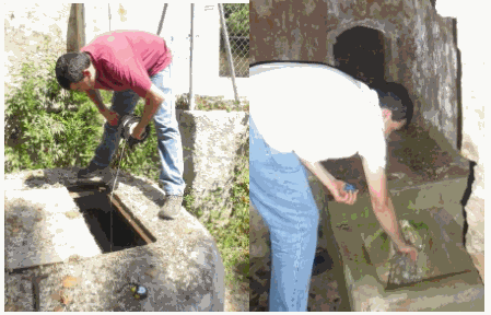 La imatge es veuen dues persones treient mostres d'aigua a diferents punts