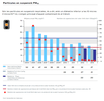 Gràfin on es mostres els nivello de partícules en suspensio PM