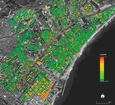 Mapa que mostra pèrdues tèrmiques que es produeixen per la teulada