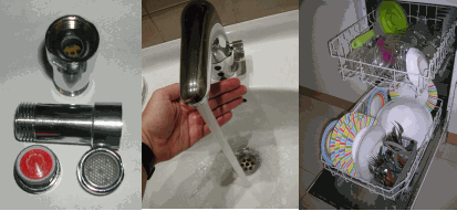 A la imatge es mostra con canviar un reductor de cabal i un rentaplats ple de vaixella