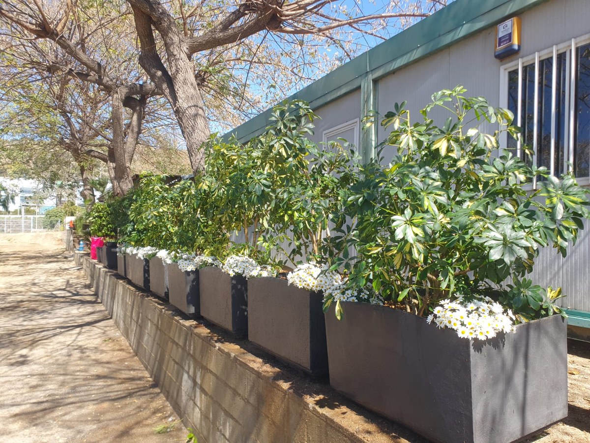 Una gran part de les jardineres són de fundació i les altres són de pedra o fusta tractada.