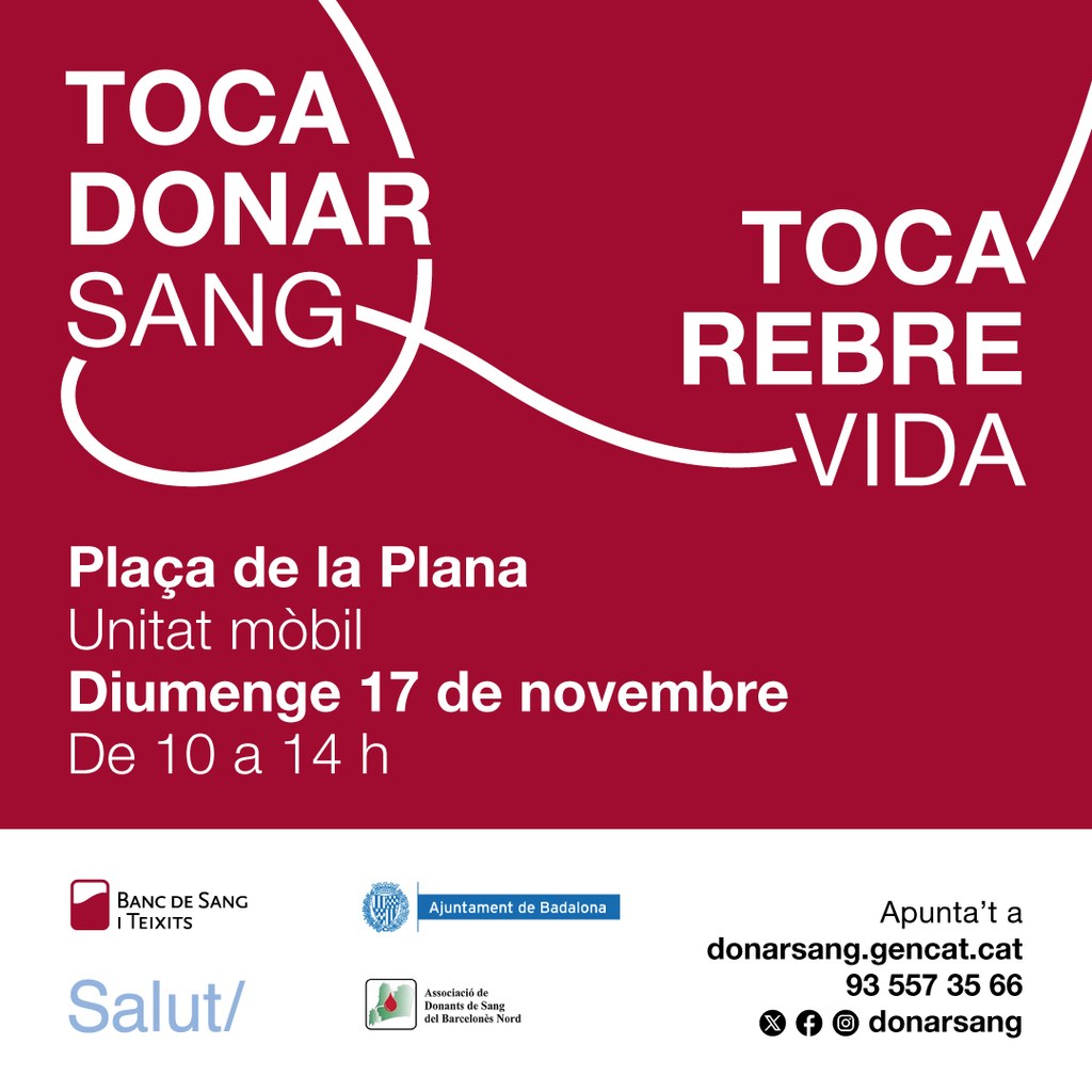- https://www.badalona.cat/ca/serveis-ajuntament/sanitat-i-salut/agenda/jornada-de-donacio-de-sang-a-la-placa-de-la-plana