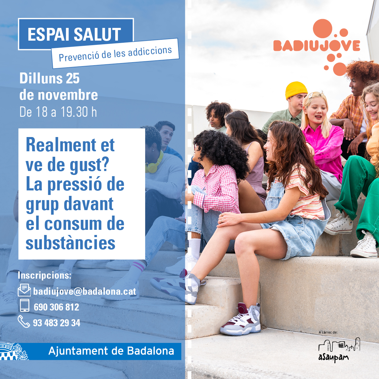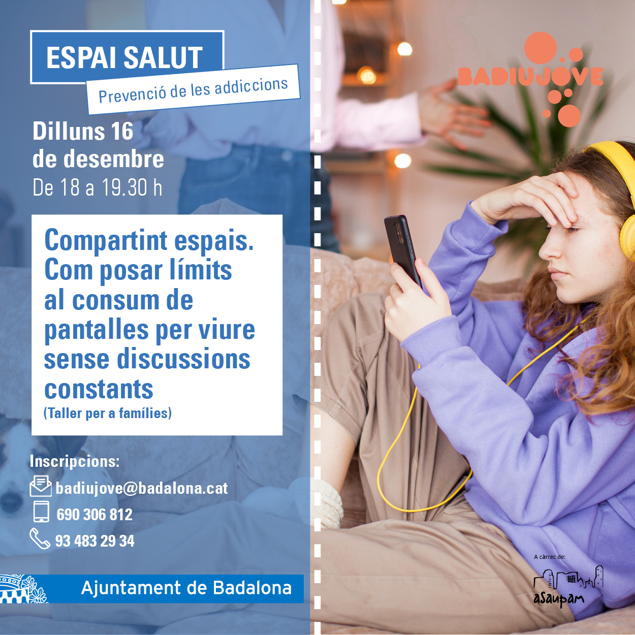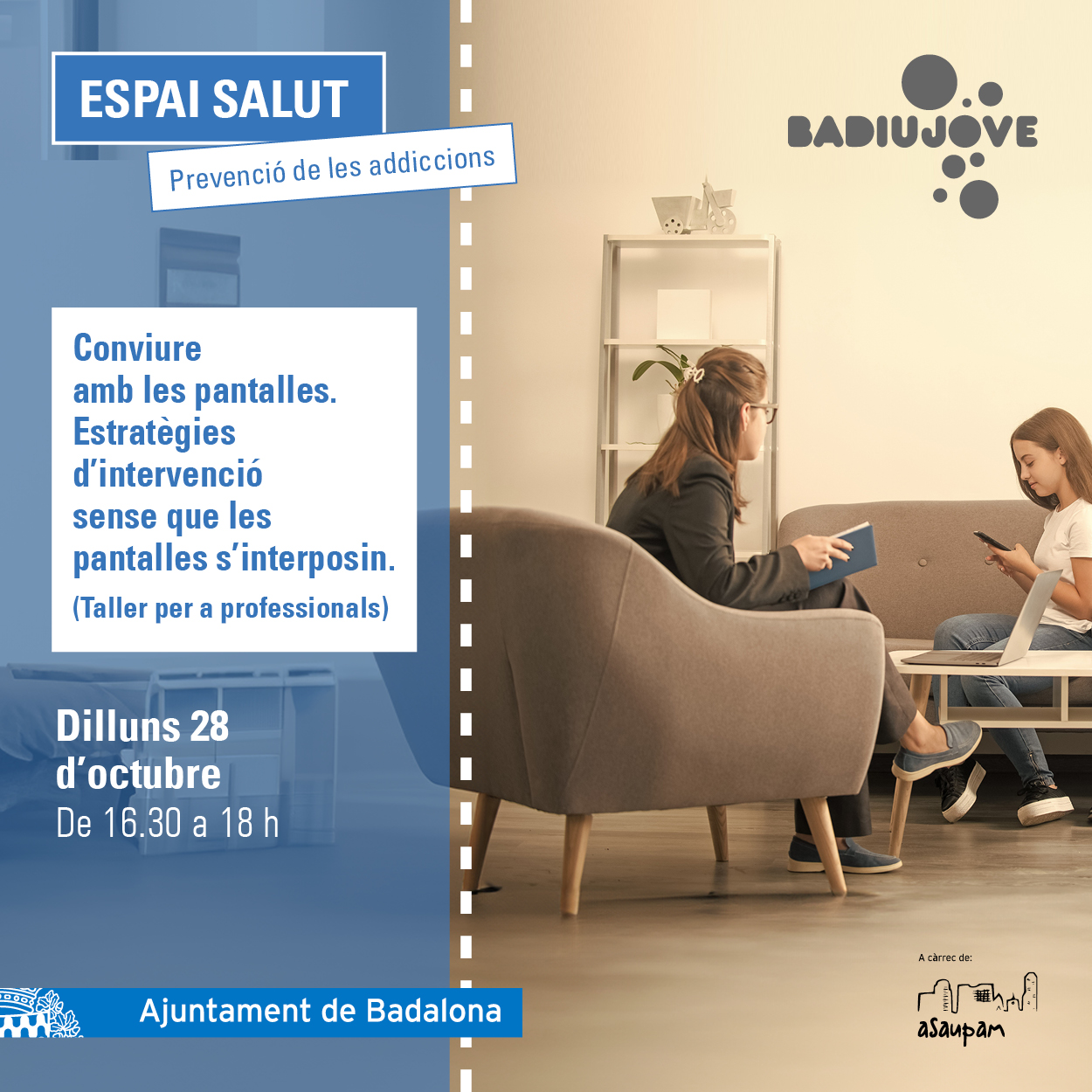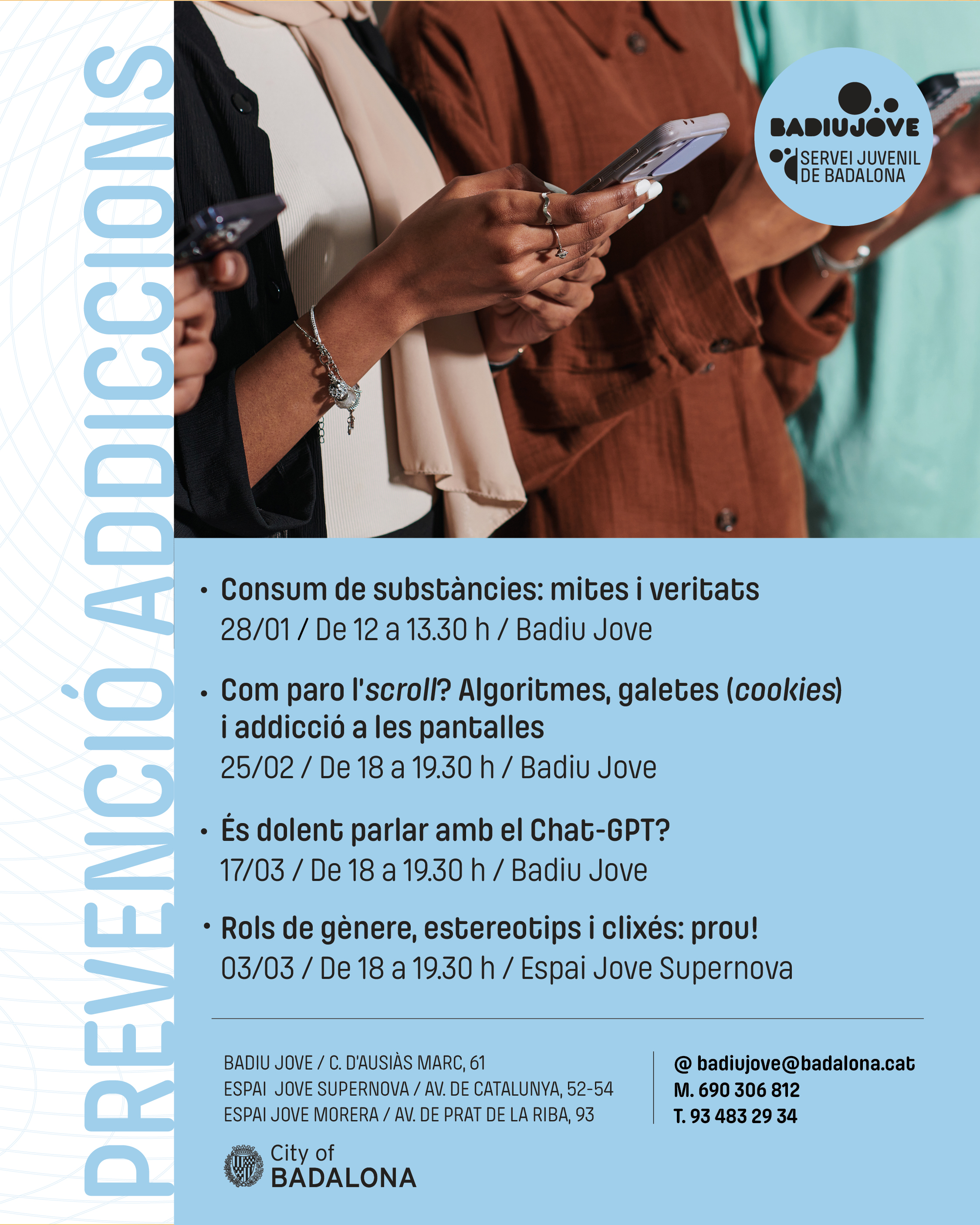 L'Ajuntament ofereix als adolescents i joves, a través dels centres educatius i el Badiu Jove, tallers dinàmics sobre diferents temes com l'alcohol, tabac, addiccions a pantalles, cannabis, jocs d'atzar... des d’un punt de vista ampli i crític, reflexionant sobre actituds enfront el consum o no consum. Veure la proposta de tallers.
