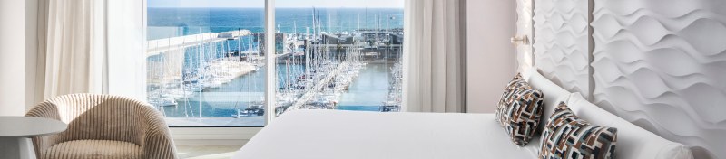 Un hotel amb ambients blancs plens de llum, amb salons d'estil mediterrani per celebracions